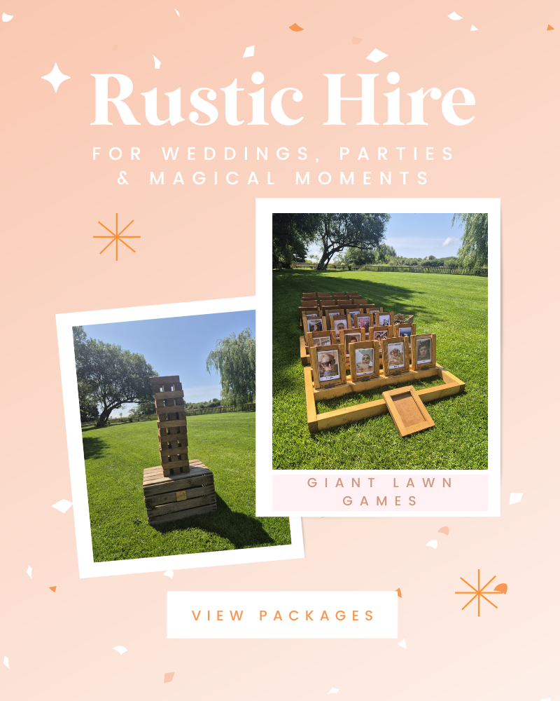 From rustic wedding props to fun-filled party packages, discover everything you need to bring your celebration to life. Browse our styled setups, games, signage and more β then book your favourites with ease. Whether you're planning a wedding, birthday, or baby shower, we've got something magical waiting for you.