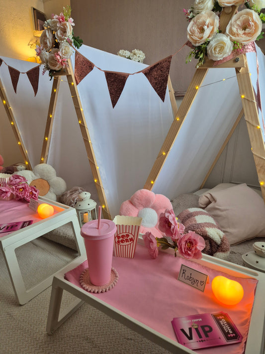 Flower power indoor Tepee sleepover party package