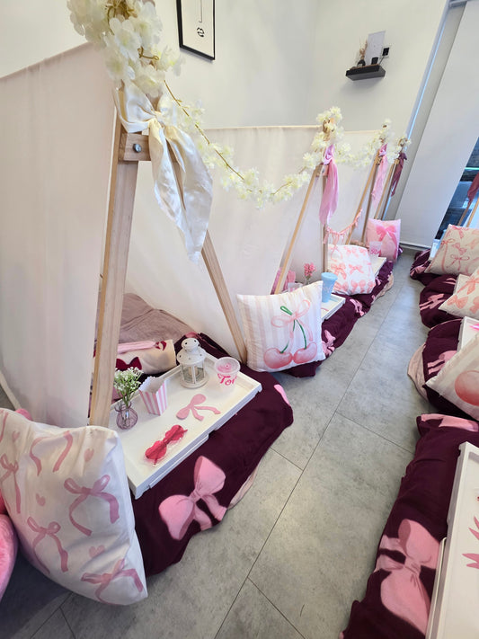 Girly bow theme Indoor Tepee sleepover party package