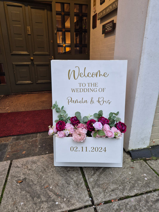 Welcome Flower Box Freestanding Easel Sign - White