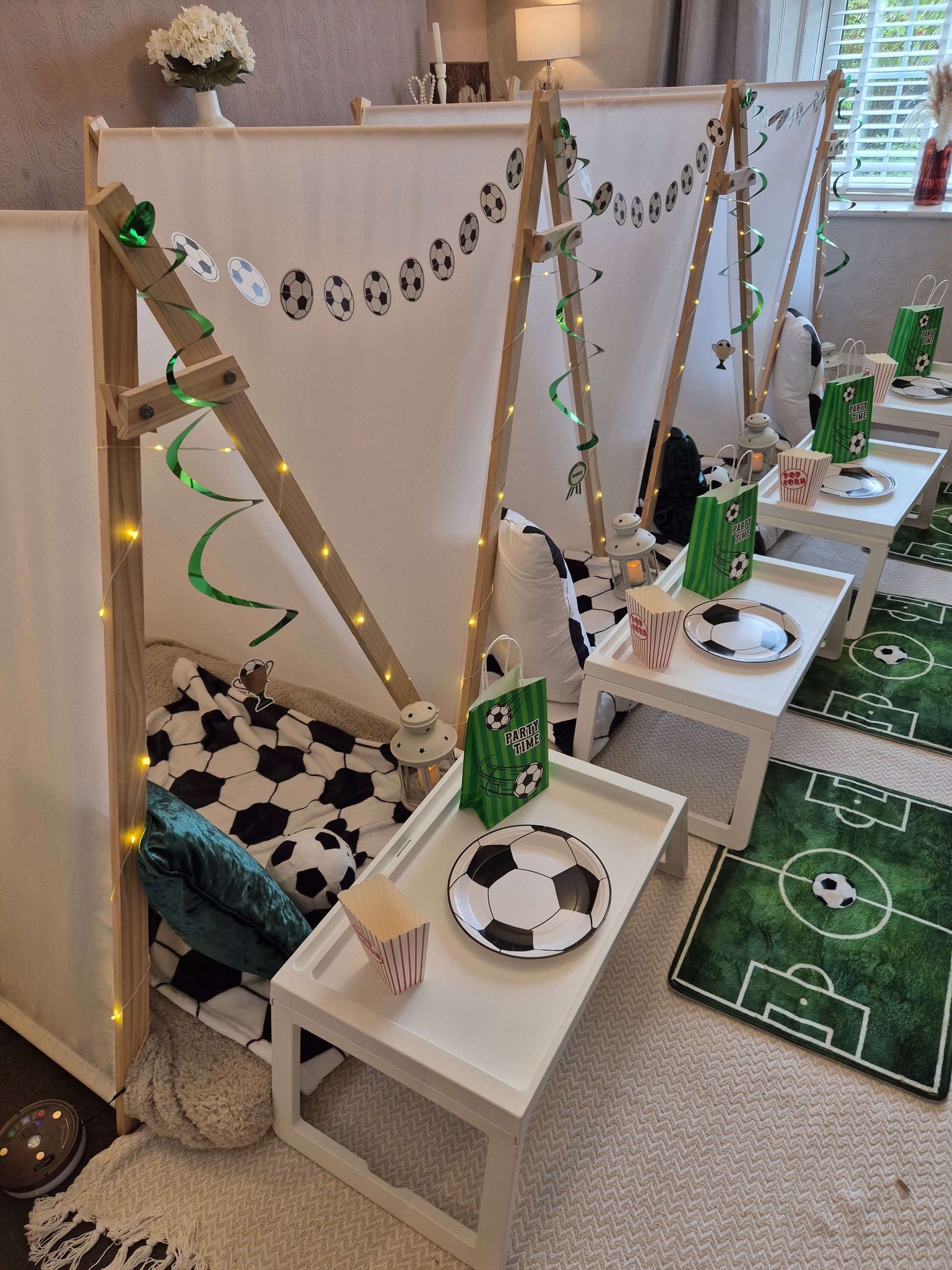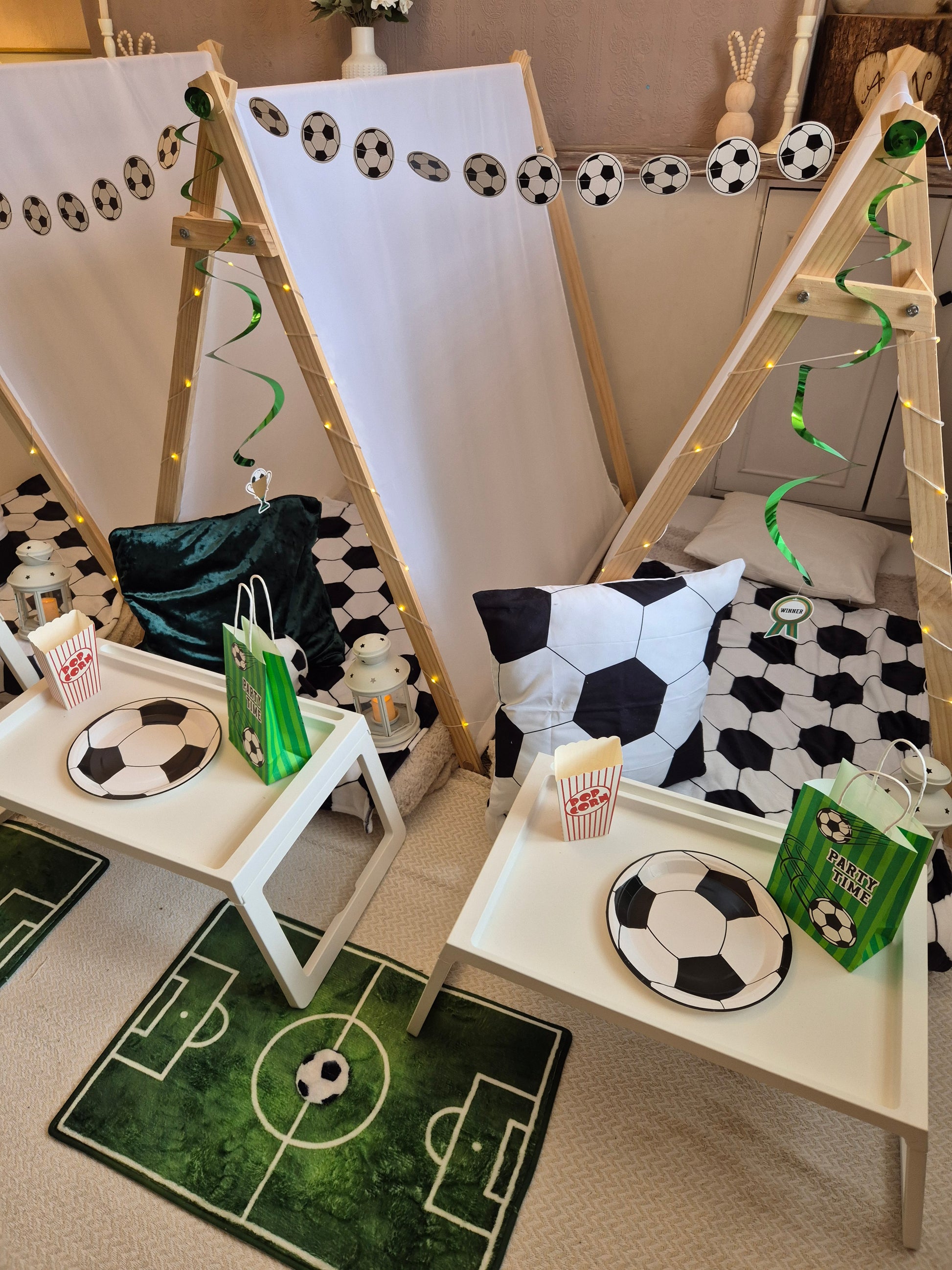 🏕️ Imagine a cozy indoor campsite or a girly pamper party with beautifully decorated teepees, soft fairy lights, comfy bedding, and magical themed setups — all ready for your little one and their friends to enjoy a night of giggles, games, and dreams!