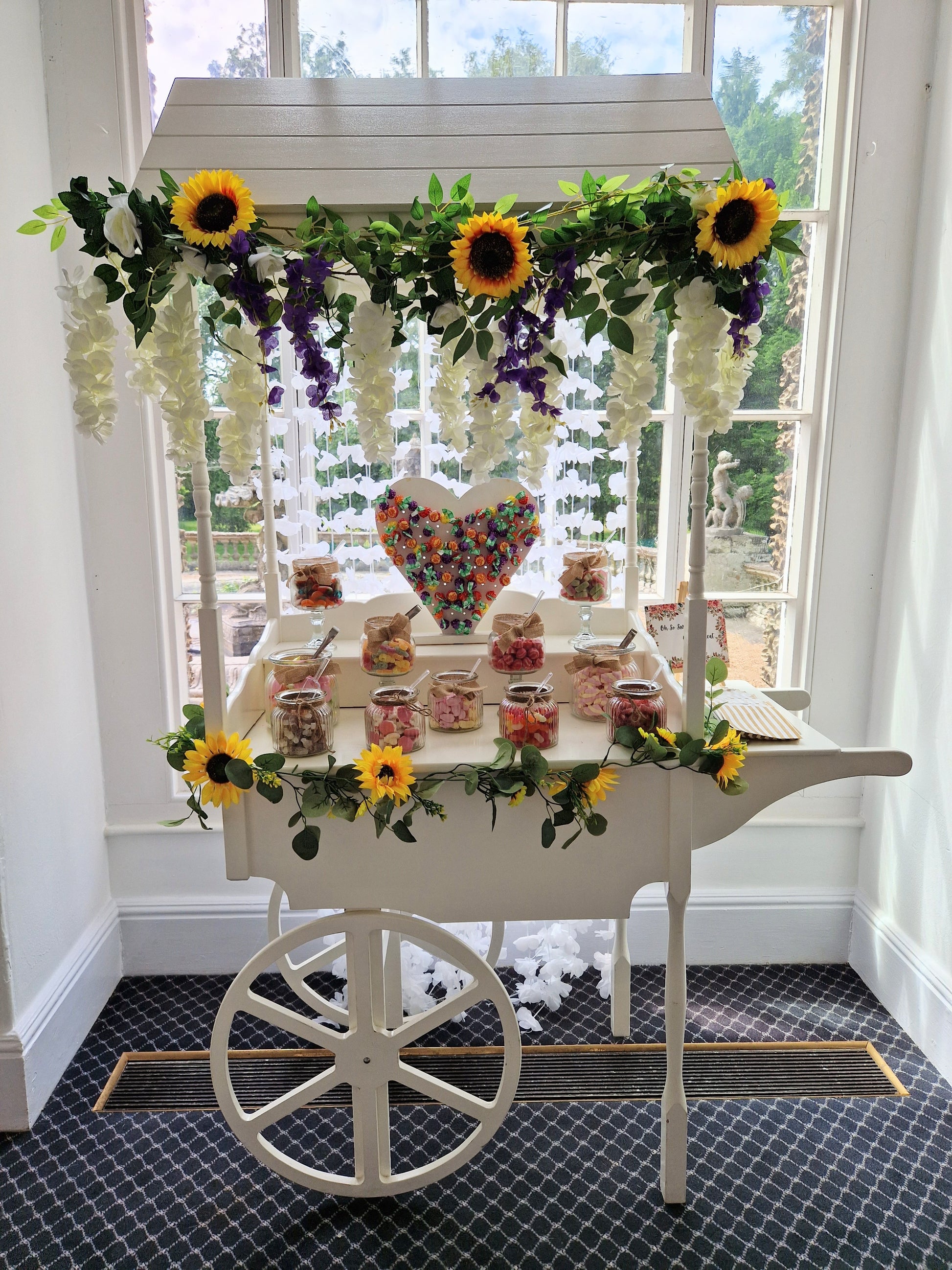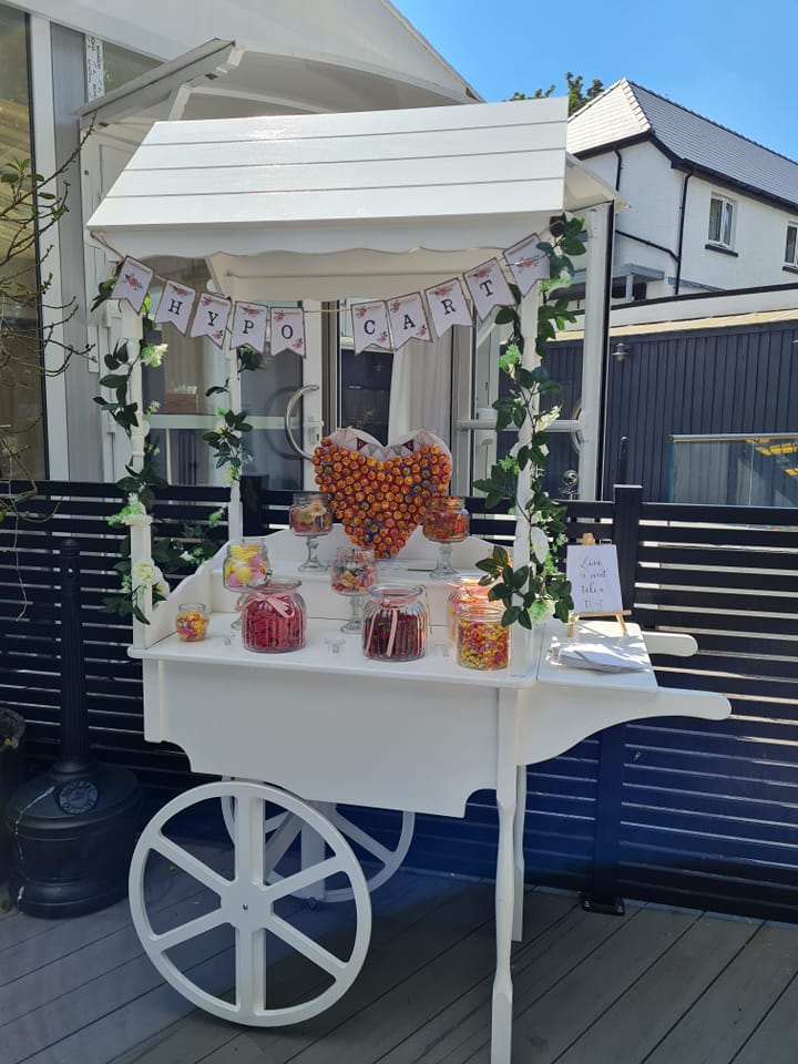 Make your wedding, party, or event sweeter with our indoor and outdoor sweet cart hire! Our beautifully designed cart is perfect for adding a touch of elegance to any occasion.