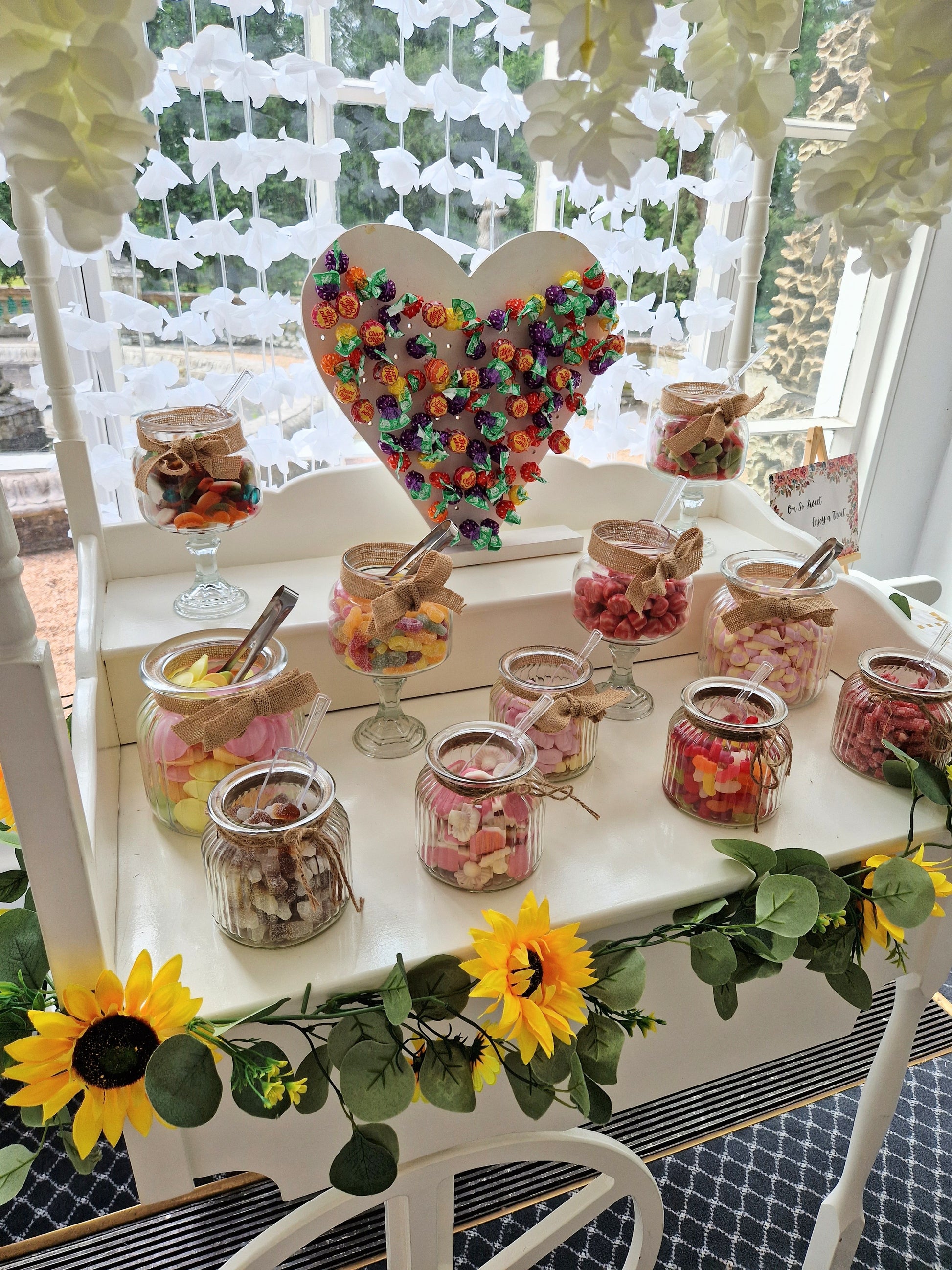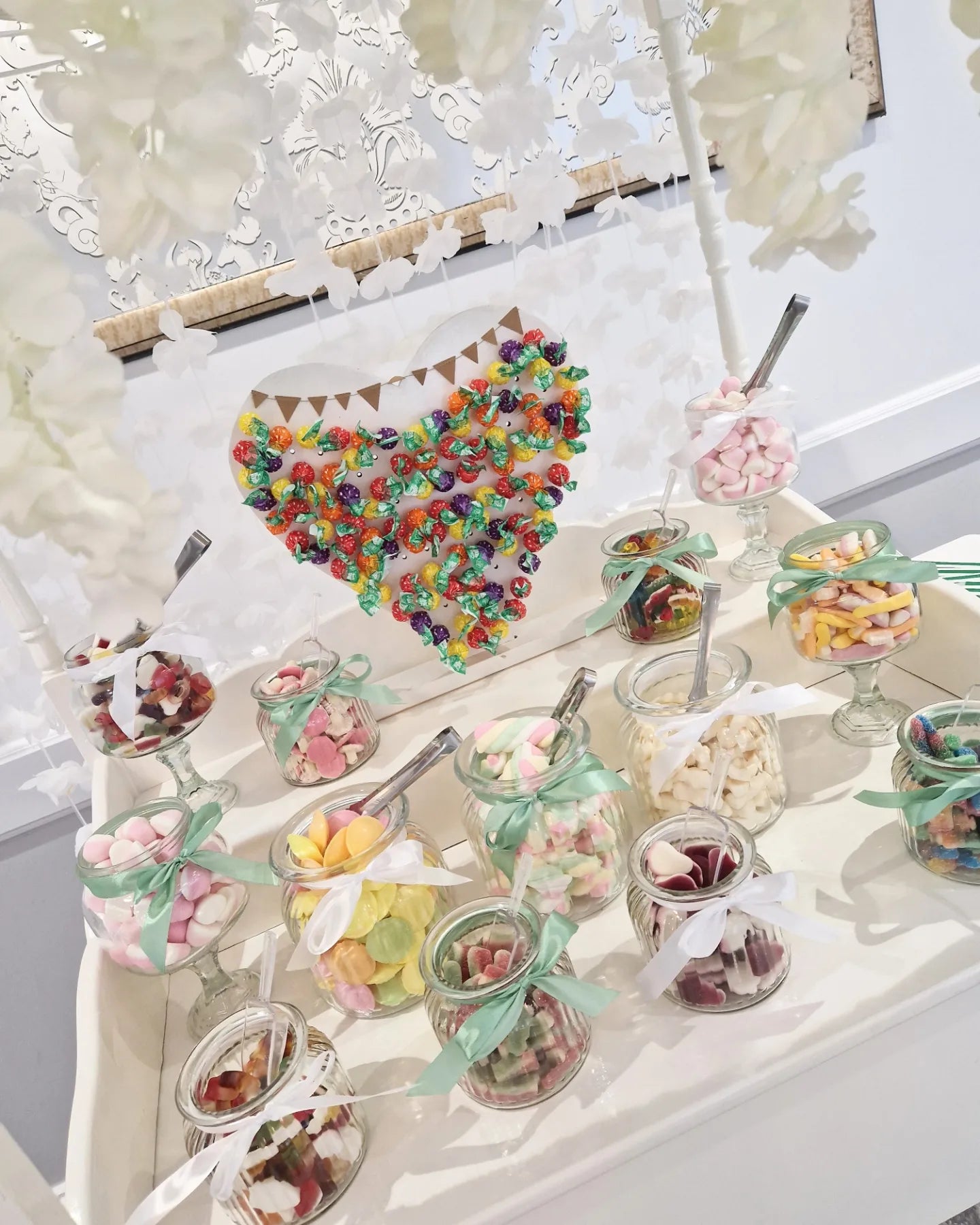 Complete with jars, decor, scoops, sweet bags, and a lollipop stand, it's the ultimate treat station for your guests. (based on up to 150 guests, please contact us for larger numbers). Contact us to sweeten up your celebration!